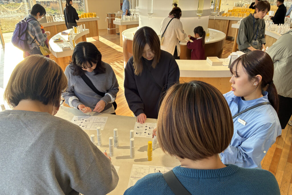 この時期は子供たちに襲い掛かるものが・・・恐れていたインフルエンザが猛威を振るいだし、次々に学級閉鎖。あー今年はいけないかもと頭をよぎりました。なんとか当日のキャンセルもありましたが、部員7名で砂川のSHIROへ行くことができました。工場に入ったらいい匂いがお出迎えをしてくれました。みんな「いい匂い」「癒される」と乙女ごごろを刺激され自分の好きな香りを選んで香水にできるブースに行く部員もいました。子供たちは壁が黒板になっていてそこにチョークでお絵描きができたり、絵本を読んだりと大人も子どもも楽しく過ごしてました。2日目は、2班に分かれて自由行動をし、みな、両手いっぱいにお土産を抱えて帰路につきました。